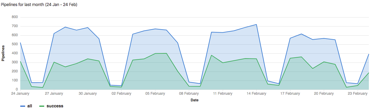 - Introduced in GitLab 3.1.1 as Commit Stats, and later renamed to Pipeline Charts.