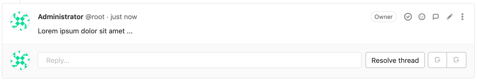Every thread in merge requests, commits, commit diffs, and snippets is initially displayed as unresolved. They can then be individually resolved by anyone with at least Developer access to the project or by the author of the change being reviewed. If the thread has been resolved and a non-member un-resolves their own response, this also unresolves the discussion thread. If the non-member then resolves this same response, this resolves the discussion thread.